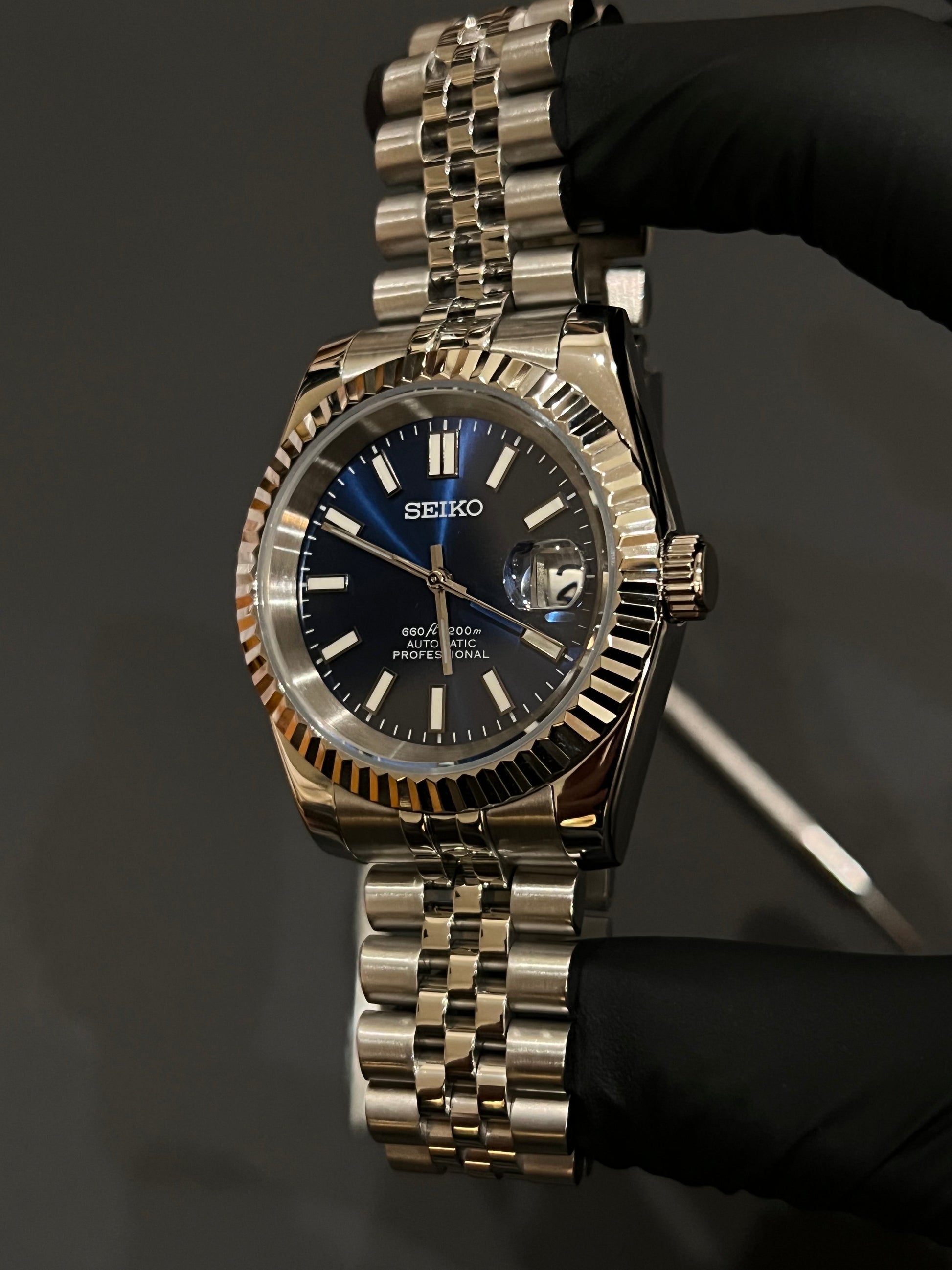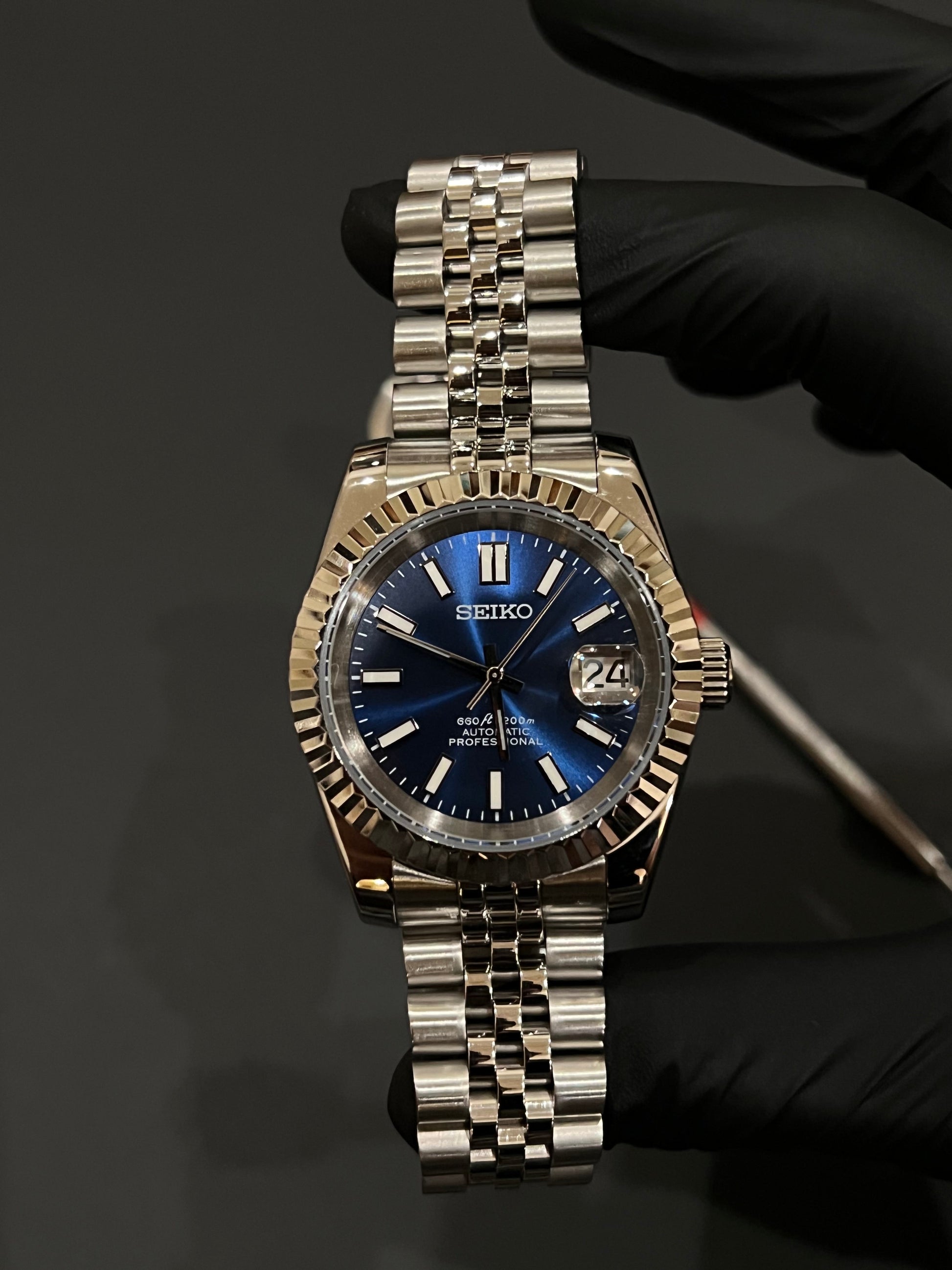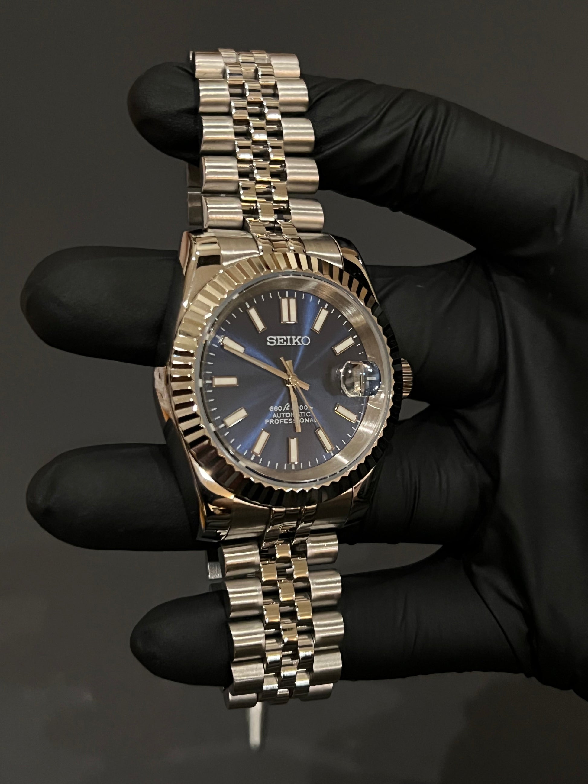 CUSTOM WATCH MOD BLUE FACE DATEJUST NH35 AUTOMATIC