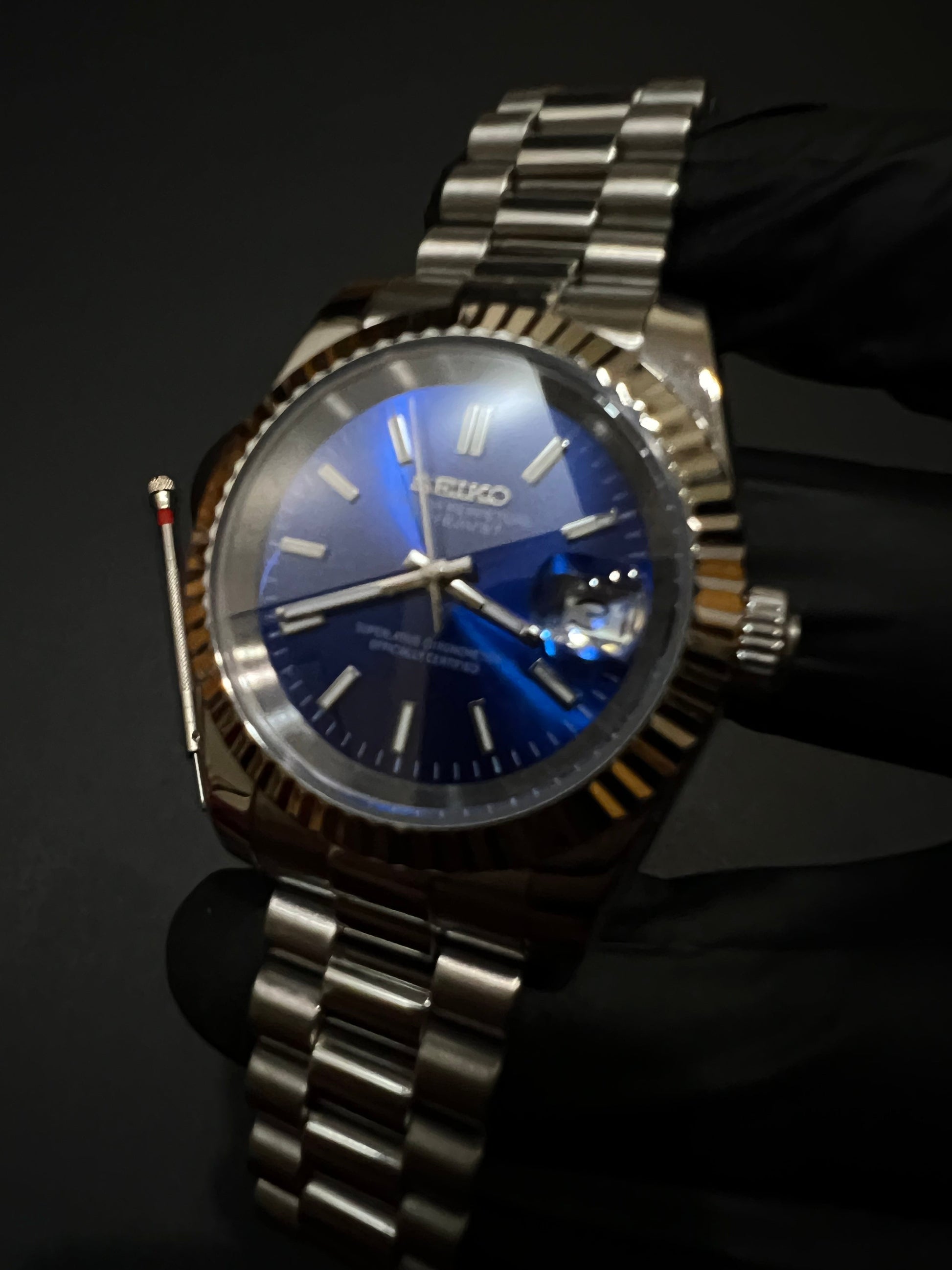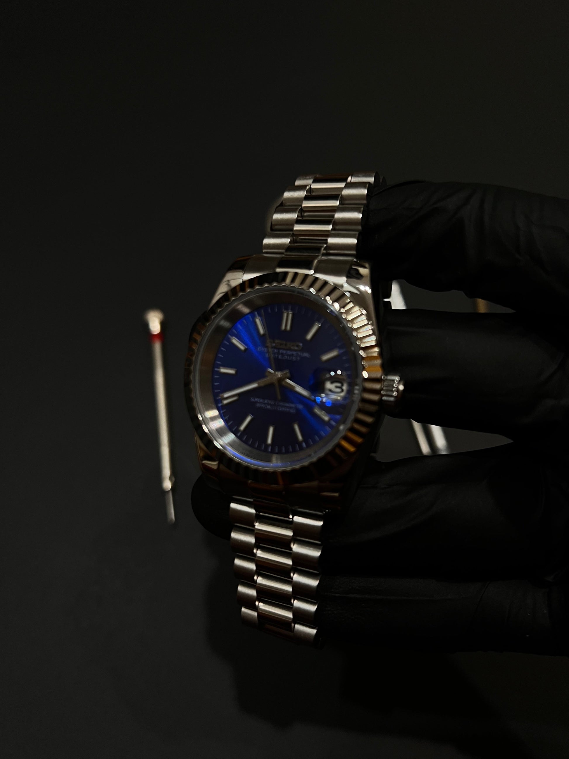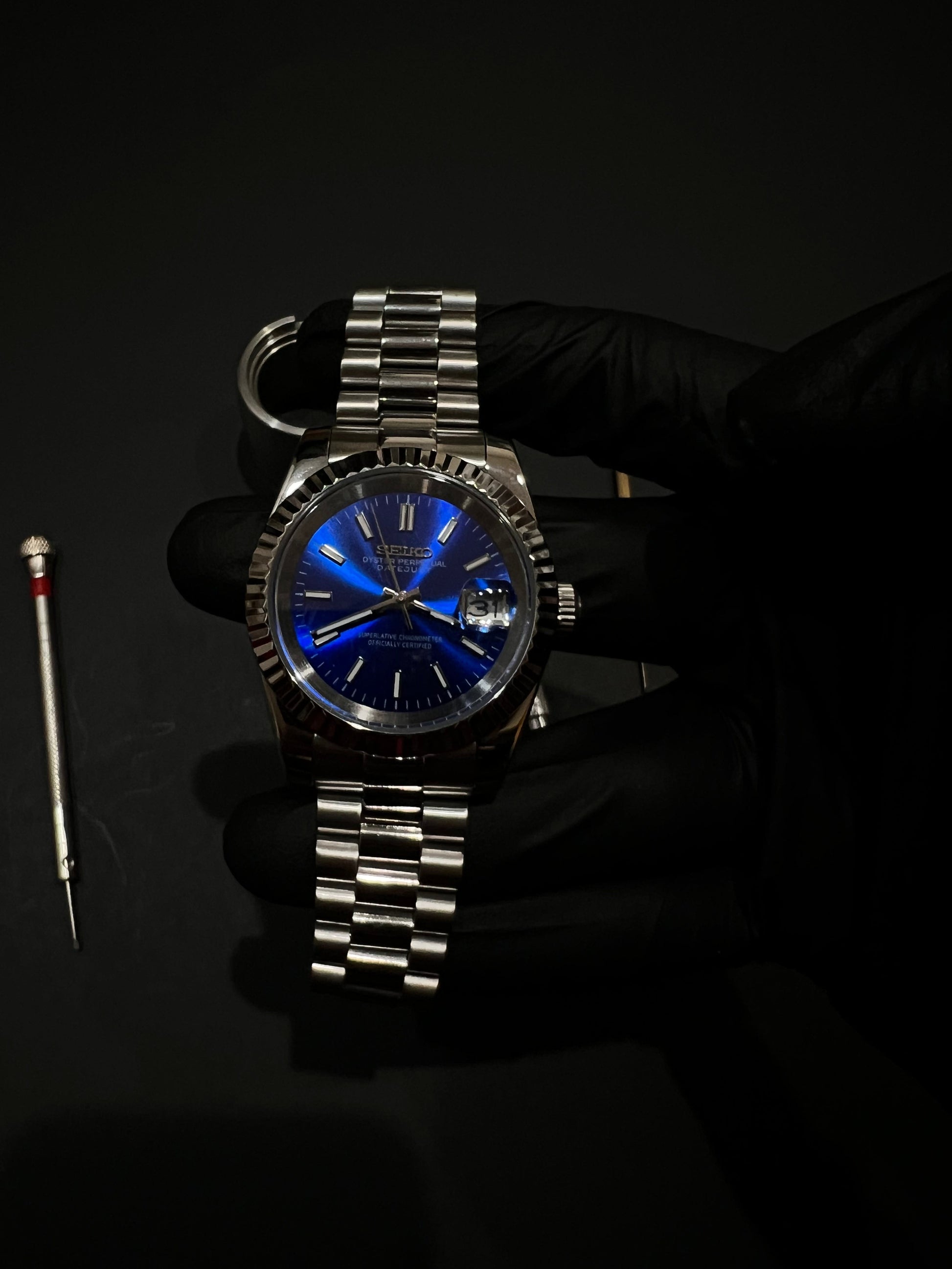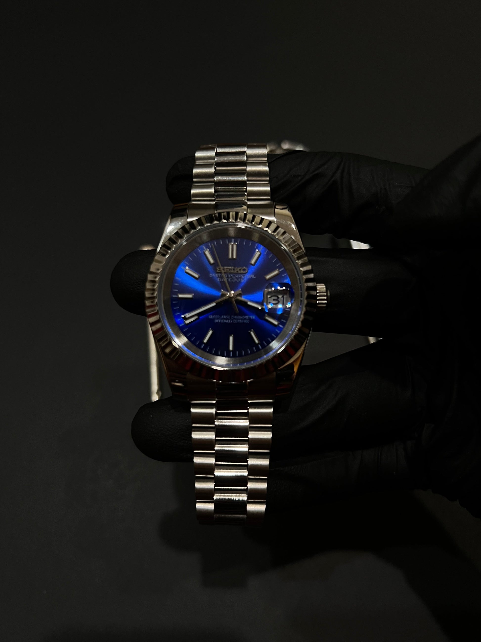 CUSTOM WATCH MOD BLUE FACE DATEJUST NH35 AUTOMATIC